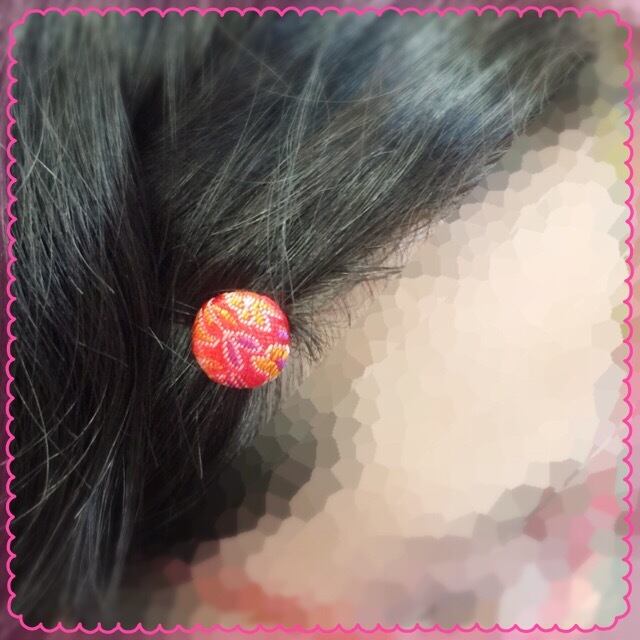 チャイナ生地(チャイナドレスの布)で作った「くるみボタン」のヘアピン☆