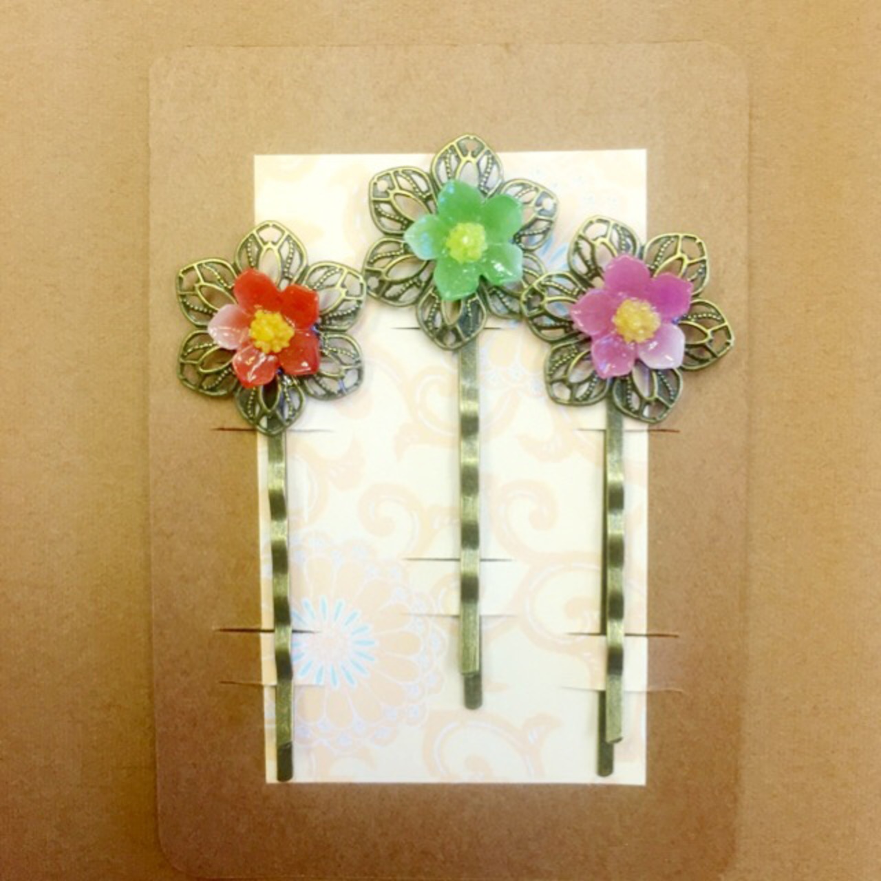 花付きヘアピン3色セット