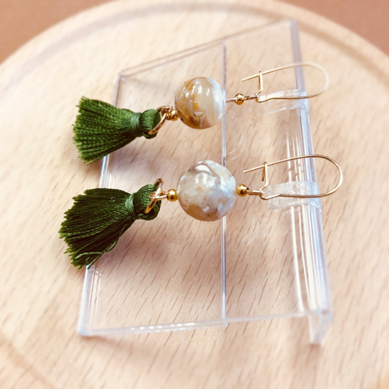 シェルビーズとミニタッセルのチャイナ風ピアス