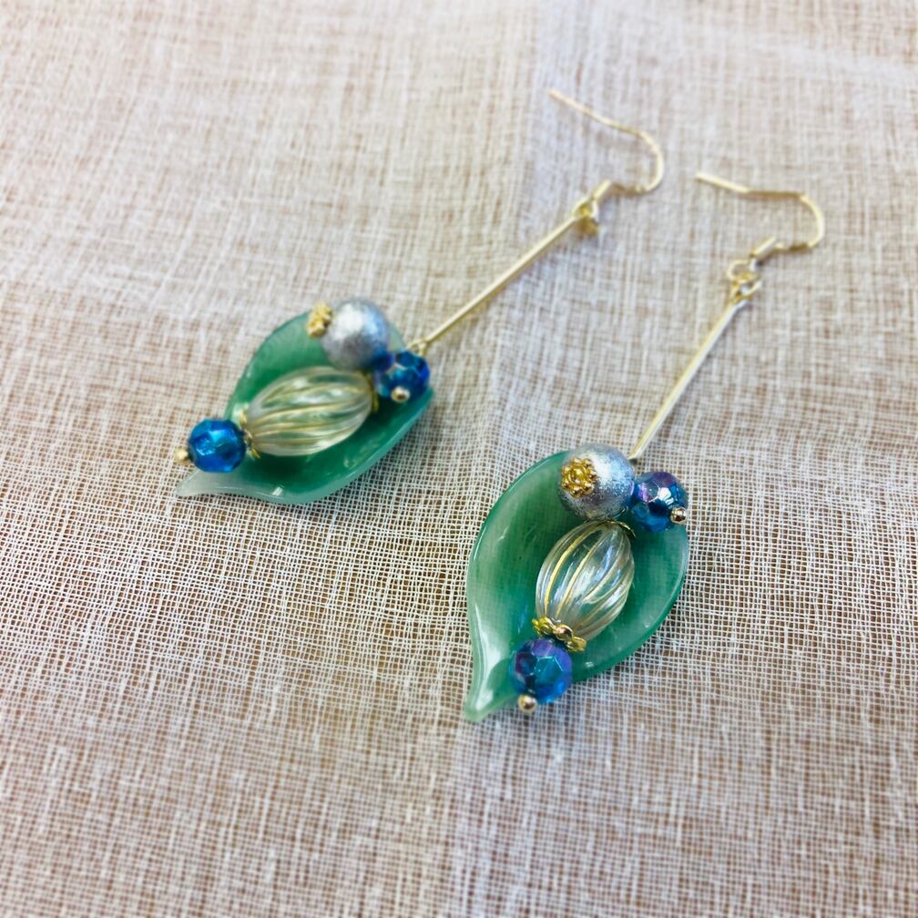 ・吉祥結びビーズとゴールドリーフのピアス × 1点/送料120円を選択